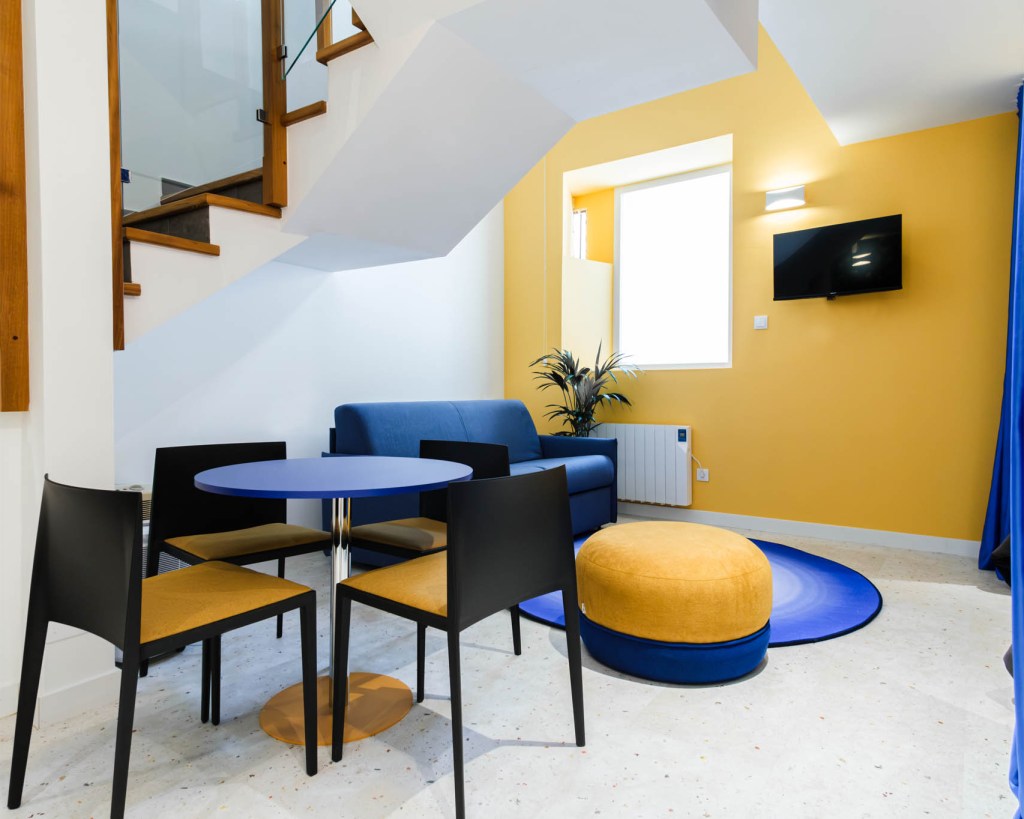 En la planta baja con vistas a la Calle Teatro y a la Torre del Reloj de Luanco se encuentra el Apartamento Vaivén, un precioso apartamento adaptado para personas con movilidad reducida. En la primera planta se encuentra el Apartamento Sirena, es el más atrevido en tonalidades lila y amarillo, y el Apartamento Faro, desde su gran galería de madera se puede observar la playa de la Ribera y la vida del barrio.
